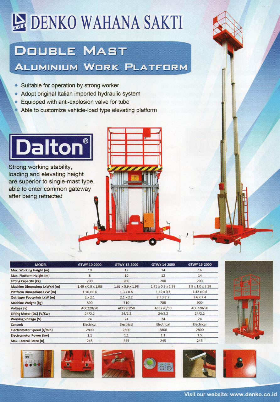 Tangga Hidrolik / Aerial Platform Work adalah peralatan kerja pada ketinggian yang dirancang untuk memudahkan akses, perawatan, instalasi, maupun pekerjaan konstruksi dengan aman dan efisien. Dengan sistem hidrolik yang kuat, platform ini mampu menjangkau ketinggian 10 hingga 16 meter, serta dilengkapi sistem kontrol yang mudah dioperasikan.
